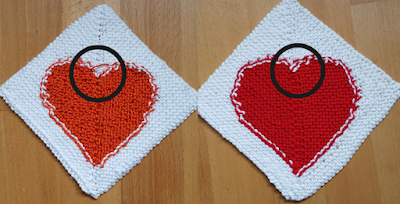 I always think that potholders, washcloths or other really small items are best if you'd like to explore new knitting ideas or to just try out a new technique. It only takes some leftover yarn and a few hours to try it out, but if it works, these newly acquired skills can be in your next big project. For this little potholder quite a few interesting techniques are used - form a provisional cast-on, over short rows and intarsia, to grafting in garter stitch. Alternatively, this piece can be used as coaster or washcloth.