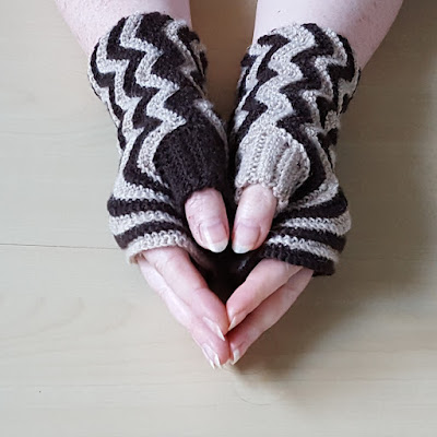 These mitts are crocheted flat and each in one piece. They are started at the thumb, which is worked flat and joined into a tube. Afterwards, the main part starts with an additional chain, and then is worked back and forth around the thumb. Working through the back loop only gives them an interesting texture.